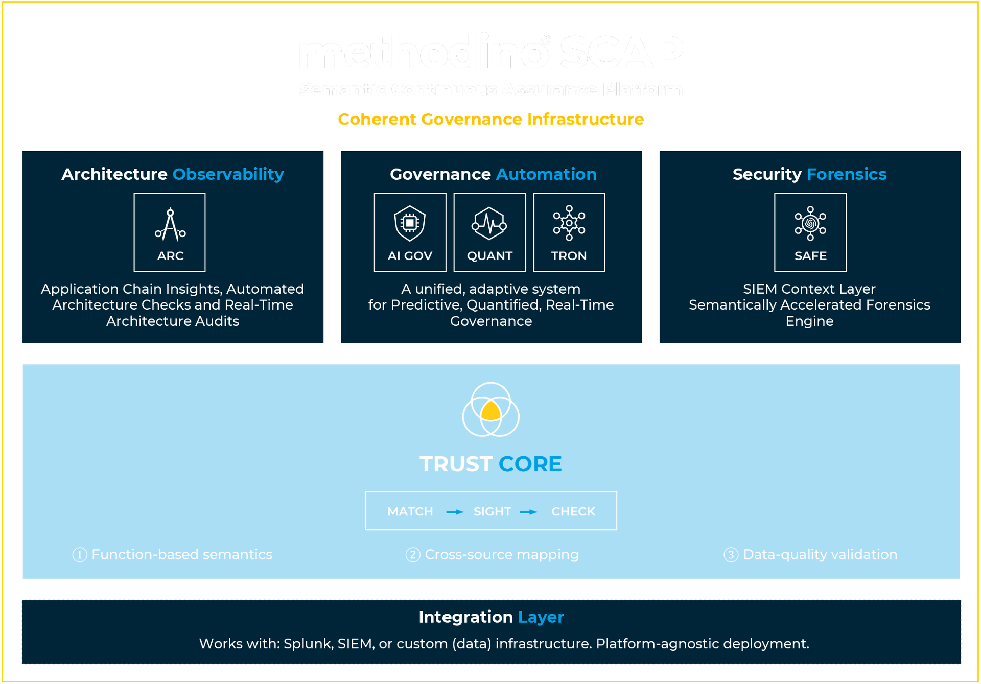 SCAP is built in two layers: a semantic foundation that creates truth, and governance modules that act on it.
