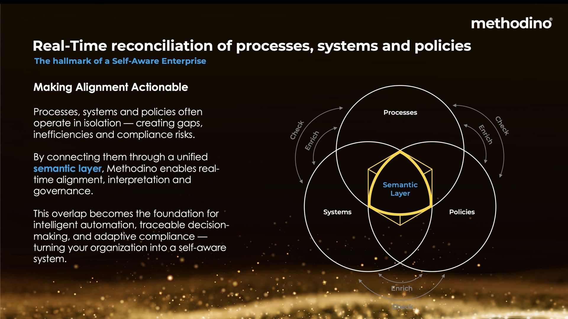 Methodino's breakthrough is a semantic control layer that operates as an active computational network, continuously